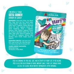 Turn meal time into yum time for your best feline friend with the BFF OMG Seeya Sooner! Chicken & Tuna Dinner in Gravy Grain-Free Cat Food Pouches. Made with chicken broth, chicken and tuna as the top ingredients, plus essential vitamins and minerals, it provides a gravylicious and balanced diet for adult kitties. Since it’s packed with broth, it’s a great way to add much-needed hydration to keep your pal healthy. Plus, it’s made with sustainably sourced ingredients in state of the art food facilities with nothing artificial.