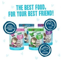 Your feline friend will be purring with delight once she tries this Weruva Best Feline Friend Paté Lovers, Aw Yeah!, Paté Jamboree! Variety Pack Grain-Free Wet Cat Food! This variety pack contains four all-natural wet cat food recipes made with land and sea proteins. These recipes deliver the protein and moisture your cat needs in her diet and they are low in carbs and fat. And since they come in Slide N’ Serve Pouches, each meal is paws-tively easy to serve! You can have peace of mind knowing that the recipes in this variety pack are made without grains, gluten, starch, carrageenan, corn, wheat, soy or artificial colors or preservatives. Your cat companion will love this variety pack and so will you!
