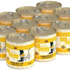 Your kitty loves hanging out in the kitchen, so give him the home-cooked flavor he craves with the Weruva Cats in the Kitchen Chicken Frick ‘A Zee Chicken Recipe Au Jus Grain-Free Canned Cat Food. Made with chicken broth and chicken as the top ingredients, every bite is loaded with the meat your little carnivore craves, and all the protein he needs for healthy muscles. Since it’s formulated with a perfectly-balanced blend of vitamins, minerals and heart-healthy taurine, it’s actually a complete meal—on its own or as a tasty kibble topper. Open a can, serve up and bring on all that quality time in the kitchen!