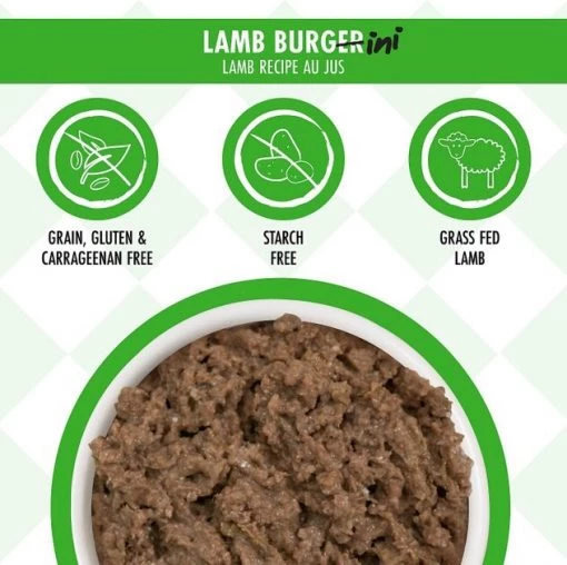 Lamb Burger-ini: 82 kcal/3.2-oz can, 154 kcal/6.0-oz can, 268 kcal/10.0-oz can