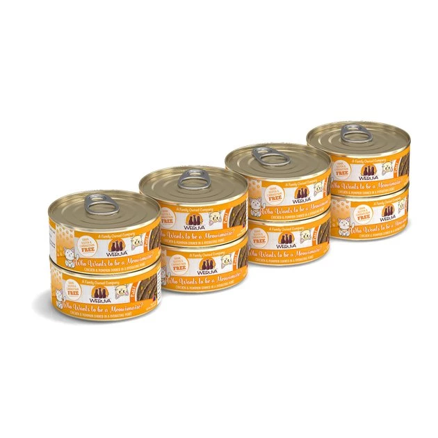 Indulge your cat in the purr-fect paté with Weruva Classic Cat Paté, Who Wants to be a Meowionaire? with Chicken & Pumpkin Wet Cat Food. This creamy dish is made using wholesome, high quality ingredients—including boneless, skinless white meat chicken and pumpkin—to appease the pickiest of eaters. It offers plenty of the protein and moisture your kitty needs to thrive. Each Weruva paté is gently pureed so you can see the difference in every recipe. Plus, it contains no corn, carrageenan, gluten, grain, soy, wheat or artificial colors and preservatives.