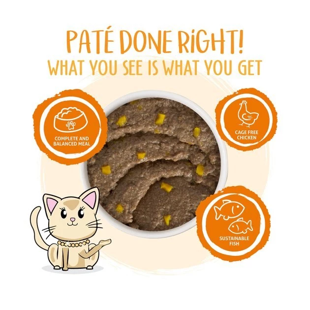 - This creamy pate features cage-free, boneless and skinless white-meat chicken and yummy pumpkin.