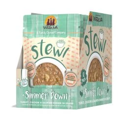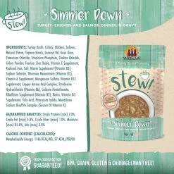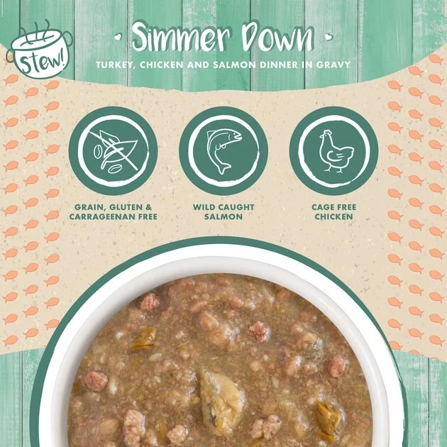 - Hearty turkey, chicken and salmon stew with paw-lickin’ good gravy.