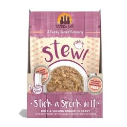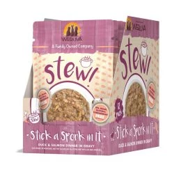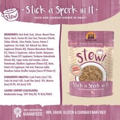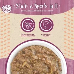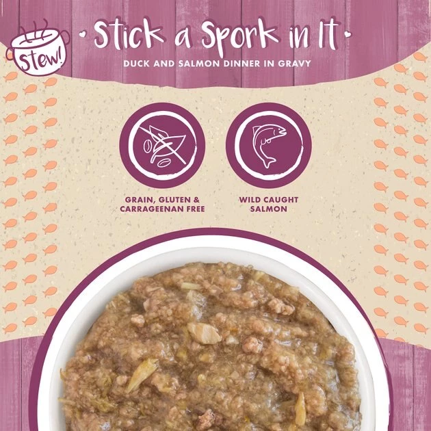 - Hearty duck and salmon stew with paw-lickin’ good gravy.