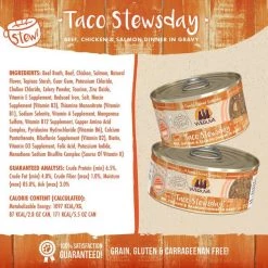 Your kitty gets to enjoy her fur-avorite day any day of the week with Weruva Classic Cat Taco Stewsday Beef, Chicken & Salmon in Gravy. This hearty recipe is made with beef, chicken and salmon cloaked in a paw-licking good gravy. You’ll be paw-leased to know every bite is loaded with vitamins, minerals, omegas and antioxidants—no grain, gluten, artificial flavors or other undesirable additives. It also has the purr-fect amount of moisture she needs to be happy and healthy. This canned cat food comes in two sizes so you can choose the right portion size for your kitty.