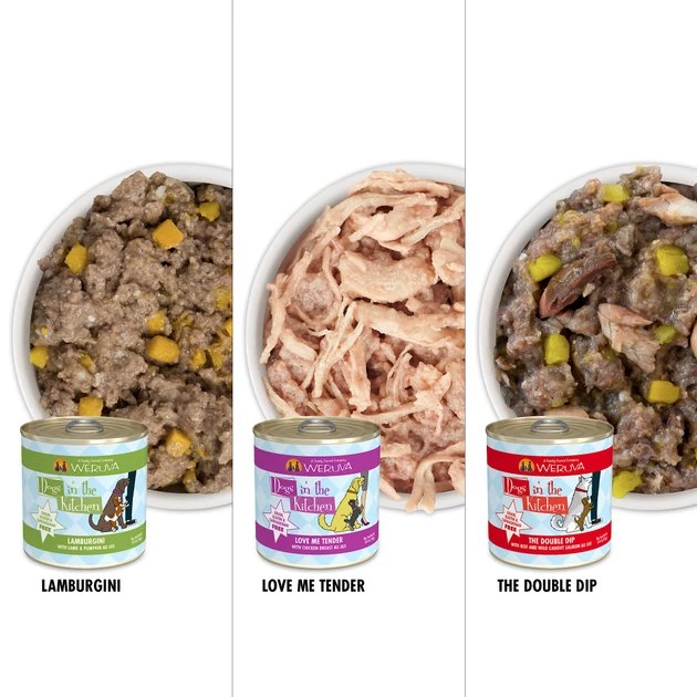 Treat your pooch to the paw-licking nutrition of the Dogs in the Kitchen Doggie Dinner Dance! Variety Pack Grain-Free Canned Dog Food. “Give me more meat, paw-lease,” says your hangry bestie, so open up a can for a culinary experience he’ll look forward to in every bowl. The variety pack includes recipes with real meat as the top ingredient like lamb, chicken, beef and wild-caught salmon in an irresistible au jus, for easily-digestible protein to support healthy muscles. Plus, every bite is loaded with vitamins, minerals, omegas and antioxidants for overall health.