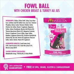 - All of Weruva’s Dogs in the Kitchen formulas focus on high quality protein and moderate fat for a nutritious meal your pup is sure to love