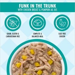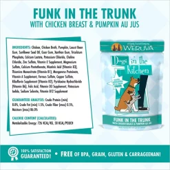 Weruva Dogs in the Kitchen Funk in the Trunk Dog Food Pouches provide a yummy home cooked meal in a perfectly portioned serving. This luxurious, natural pet food is made from the best ingredients around the world including fresh, high-quality chicken breast and pumpkin. As with all of Weruva’s Dogs in the Kitchen recipes, the ingredients in Funk in the Trunk maintain their natural look and recognizable texture, so what you see is exactly what you – and your pup – get!