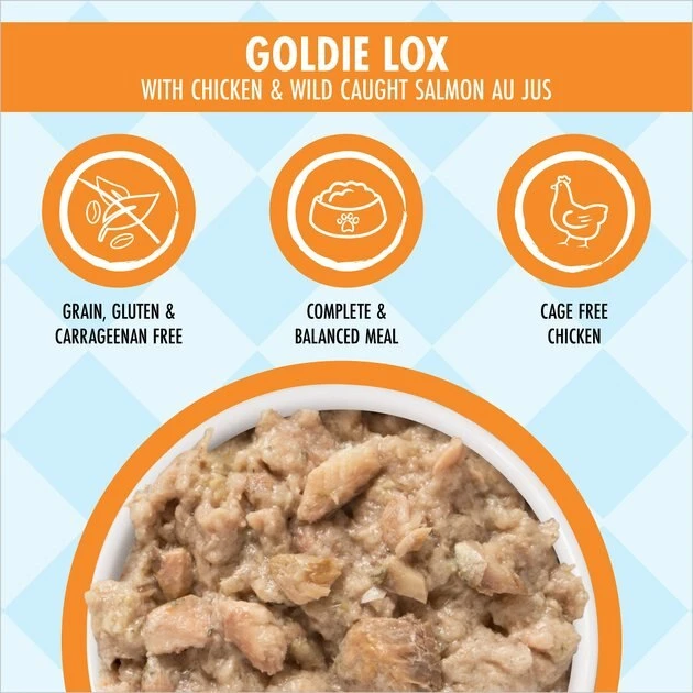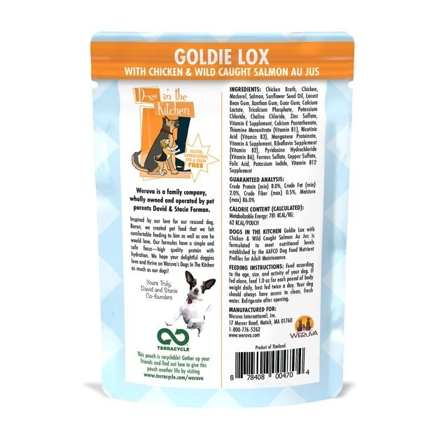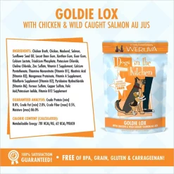 Weruva Dogs in the Kitchen Goldie Lox Dog Food Pouches provide a yummy home cooked meal in a perfectly portioned serving. This luxurious, natural pet food is made from the best ingredients around the world including fresh, high-quality chicken breast and wild caught salmon. As with all of Weruva’s Dogs in the Kitchen recipes, the ingredients in Goldie Lox maintain their natural look and recognizable texture, so what you see is exactly what you – and your pup – get!
