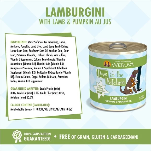 - All of Weruva’s Dogs in the Kitchen formulas focus on high quality protein and moderate fat for a nutritious meal your pup is sure to love
