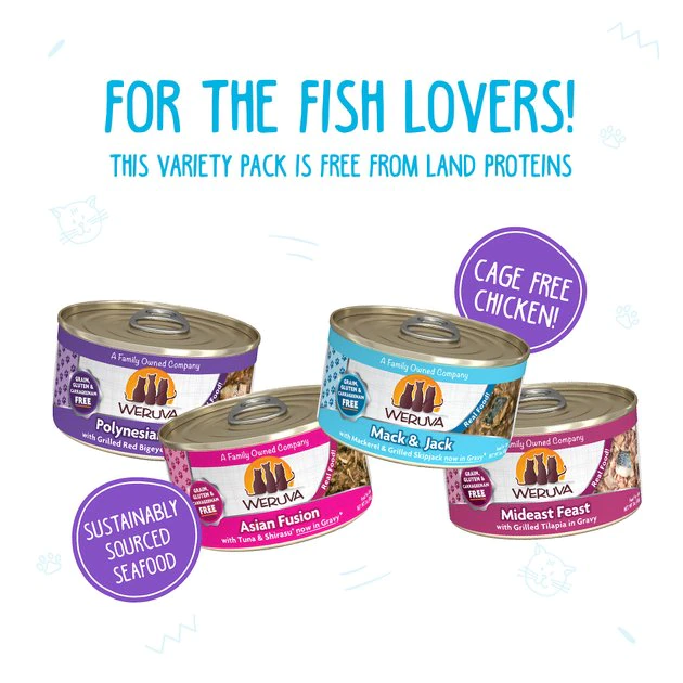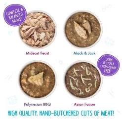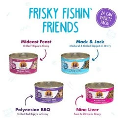 - Grain-free wet food variety pack with real meat including mackerel and tuna in tasty, moist recipes.