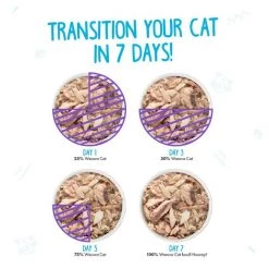 Weruva always recommends switching your cat or dog’s diet slowly and to adjust according to your pet’s digestive stability. Typically, a 6 day transition suites most pet’s needs. We recommend feeding a mix of 25% Weruva & 75% of the previous food for the first 2 days. For the next 2 days, feed 50% Weruva & 50% of the previous diet. Days 5 & 6, Feed 75% Weruva with 25% of the previous diet. Your pet should be fully adjusted to an exclusive high-quality Weruva diet thereafter.