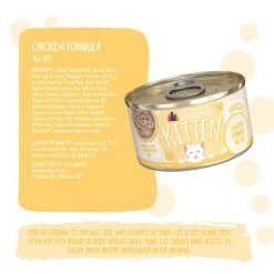 Kittens require more calories for growth. If fed alone, feed 1-2 cans per 1.5 to 2 lbs of body weight per day, or until full. Divide into 3 or more meals. As your kitten grows, continue to adjust the feeding amount to maintain ideal body shape and avoid excess weight. Your kitten should have access to clean, fresh water. Refrigerate after opening.