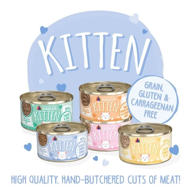 Your kitty will pounce on Weruva Kitten, Chicken & Pumpkin Formula in Gravy Wet Cat Food! This delicious medley of chicken, pumpkin and gravy is fortified with essential vitamins and minerals to support your kitten’s physical and mental growth. Each delightful dish offers the lean protein and moisture your furbaby needs to thrive. Weruva cat food is produced in human food facilities following strict global standards to ensure high quality meals for your precious puddy. Plus, it contains no by-products, corn, carrageenan, gluten, grain, soy or artificial colors and preservatives.