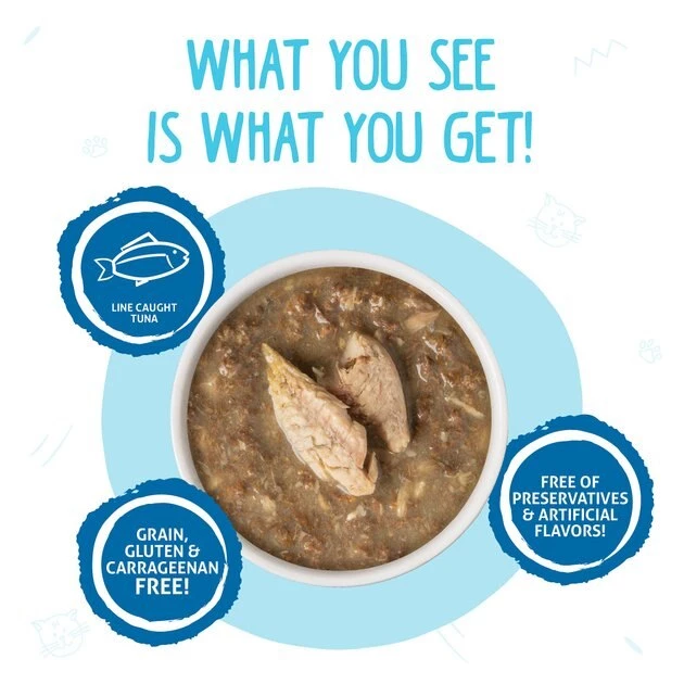Bring some fresh-catch nutrition to your kitty’s bowl with Weruva Mack and Jack with Mackerel & Grilled Skipjack Grain-Free Canned Cat Food. Made with mackerel and tuna as the top ingredients, every bite is loaded with the meat your little carnivore craves, and all the protein he needs for healthy muscles. Since it’s formulated with a perfectly-balanced blend of vitamins, minerals and heart-healthy taurine, every easy-open can is actually a complete meal—on its own or as a tasty kibble topper. It’s no wonder that for cats everywhere, Weruva is also known as “the best cat food under the sun!”