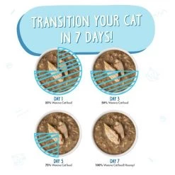 Weruva always recommends switching your cat or dog’s diet slowly and to adjust according to your pet’s digestive stability. Typically, a 6 day transition suites most pet’s needs. We recommend feeding a mix of 25% Weruva & 75% of the previous food for the first 2 days. For the next 2 days, feed 50% Weruva & 50% of the previous diet. Days 5 & 6, Feed 75% Weruva with 25% of the previous diet. Your pet should be fully adjusted to an exclusive high-quality Weruva diet thereafter.