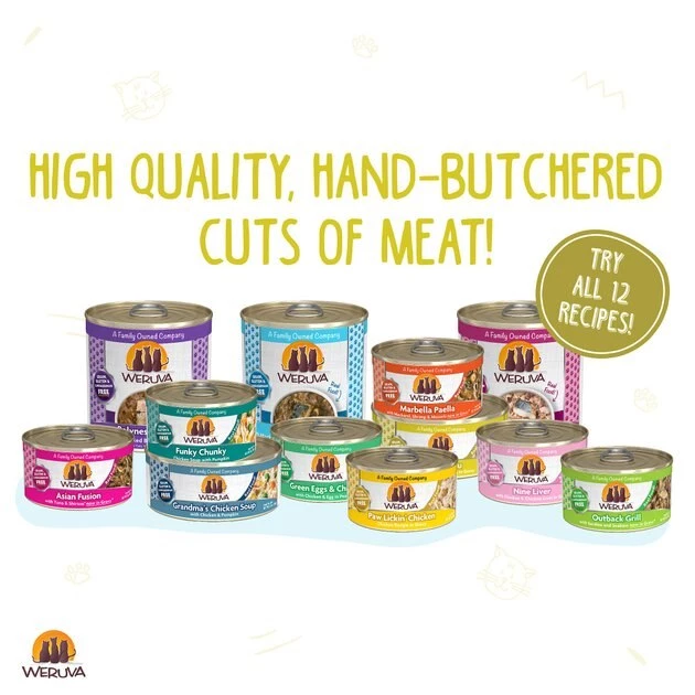Weruva always recommends switching your cat or dog’s diet slowly and to adjust according to your pet’s digestive stability. Typically, a 6 day transition suites most pet’s needs. We recommend feeding a mix of 25% Weruva & 75% of the previous food for the first 2 days. For the next 2 days, feed 50% Weruva & 50% of the previous diet. Days 5 & 6, Feed 75% Weruva with 25% of the previous diet. Your pet should be fully adjusted to an exclusive high-quality Weruva diet thereafter.