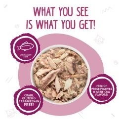 - 100% grain-free, carrageenan-free, complete and balanced meal in every can, with zero BPA, antibiotics, hormones, GMOs or MSG; made in a human food facility.