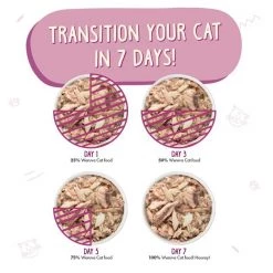 Weruva always recommends switching your cat or dog’s diet slowly and to adjust according to your pet’s digestive stability. Typically, a 6 day transition suites most pet’s needs. We recommend feeding a mix of 25% Weruva & 75% of the previous food for the first 2 days. For the next 2 days, feed 50% Weruva & 50% of the previous diet. Days 5 & 6, Feed 75% Weruva with 25% of the previous diet. Your pet should be fully adjusted to an exclusive high-quality Weruva diet thereafter.