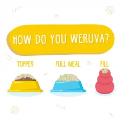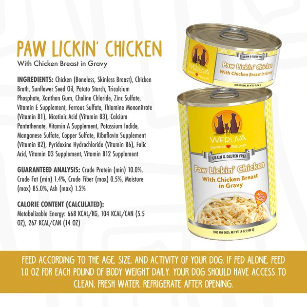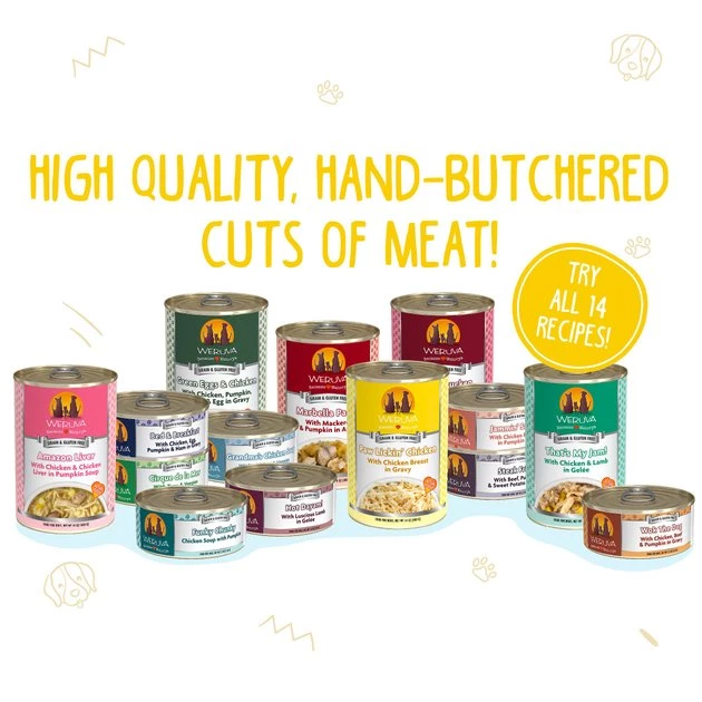 - All of Weruva’s dog food formulas are formulated with the carnivore in mind, so this recipe focuses on high quality protein, minimal carbs and a high moisture content for the most nutritious meal around for your pup.