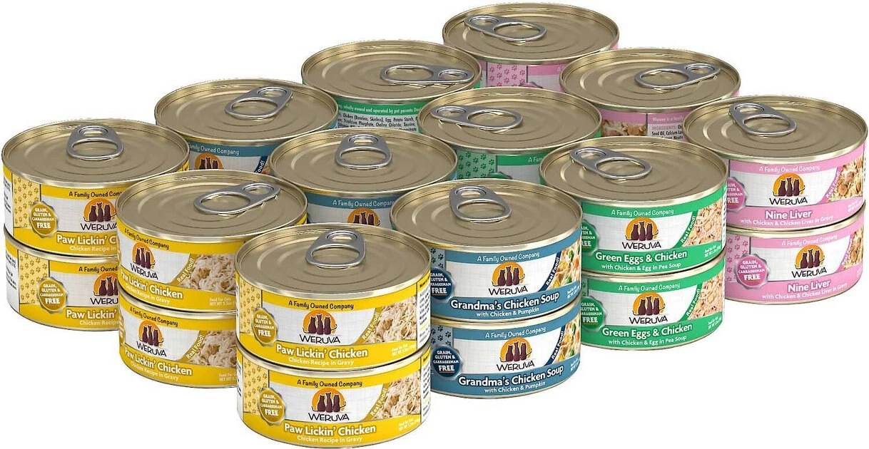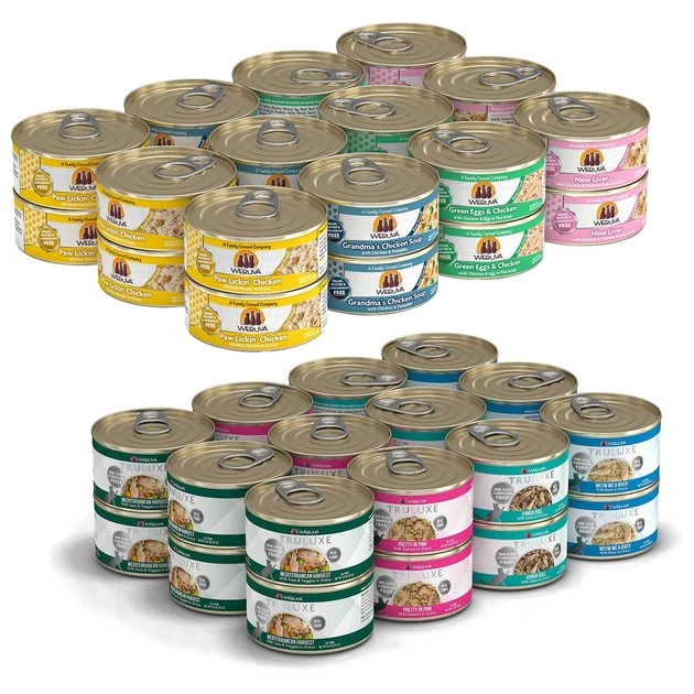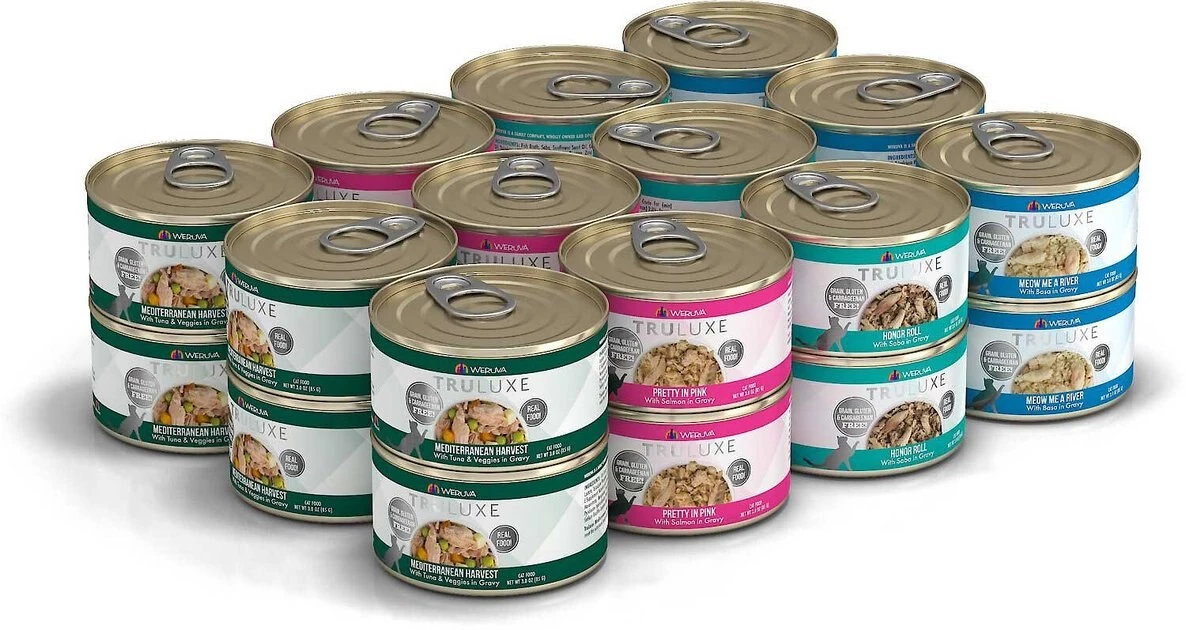 Treat your kitty to the whisker-licking nutrition of Weruva Paw Lickin’ Pals Variety Pack Grain-Free Canned Cat Food + TruLuxe TruSurf Variety Pack Grain-Free Canned Cat Food. The Paw Licking’ Pals variety pack includes recipes with real meat as the top ingredient like chicken plus tasty eggs, for easily-digestible protein to support healthy muscles. Also from Weruva, the TruSurf variety pack includes gravylicious recipes with real meat as the top ingredient like basa fish, saba mackerel, tuna and salmon for easily-digestible protein to support healthy muscles. Plus, every bite of each variety pack is loaded with vitamins, minerals and antioxidants for overall health, and lots of hydration from real broth!