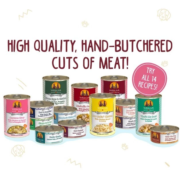 - All of Weruva’s dog food formulas are formulated with the carnivore in mind, so this recipe focuses on high quality protein, minimal carbs and a high moisture content for the most nutritious meal around for your pup.