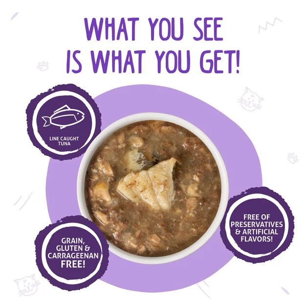 - Grain-free wet food is made with sardines and Bigeye tuna as the first ingredients so it’s high in protein sourced from real meat.