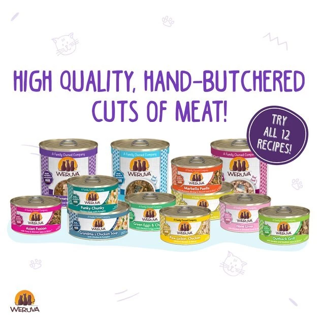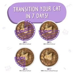Weruva always recommends switching your cat or dog’s diet slowly and to adjust according to your pet’s digestive stability. Typically, a 6 day transition suites most pet’s needs. We recommend feeding a mix of 25% Weruva & 75% of the previous food for the first 2 days. For the next 2 days, feed 50% Weruva & 50% of the previous diet. Days 5 & 6, Feed 75% Weruva with 25% of the previous diet. Your pet should be fully adjusted to an exclusive high-quality Weruva diet thereafter.