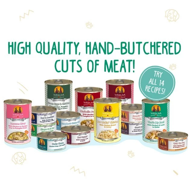 - All of Weruva’s dog food formulas are formulated with the carnivore in mind, so this recipe focuses on high quality protein, minimal carbs and a high moisture content for the most nutritious meal around for your pup.