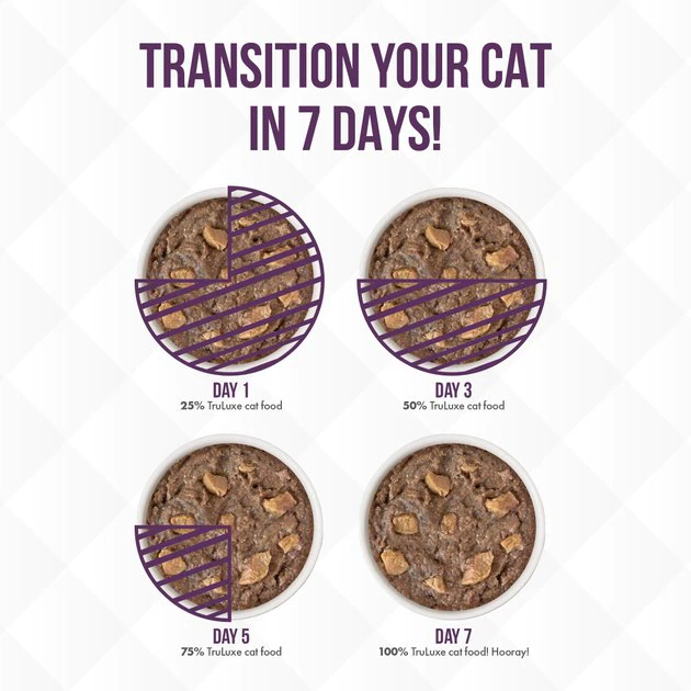 Weruva always recommends switching your cat or dog’s diet slowly and to adjust according to your pet’s digestive stability. Typically, a 6 day transition suites most pet’s needs. We recommend feeding a mix of 25% Weruva & 75% of the previous food for the first 2 days. For the next 2 days, feed 50% Weruva & 50% of the previous diet. Days 5 & 6, Feed 75% Weruva with 25% of the previous diet. Your pet should be fully adjusted to an exclusive high-quality Weruva diet thereafter.