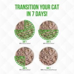 Weruva always recommends switching your cat or dog’s diet slowly and to adjust according to your pet’s digestive stability. Typically, a 6 day transition suites most pet’s needs. We recommend feeding a mix of 25% Weruva & 75% of the previous food for the first 2 days. For the next 2 days, feed 50% Weruva & 50% of the previous diet. Days 5 & 6, Feed 75% Weruva with 25% of the previous diet. Your pet should be fully adjusted to an exclusive high-quality Weruva diet thereafter.