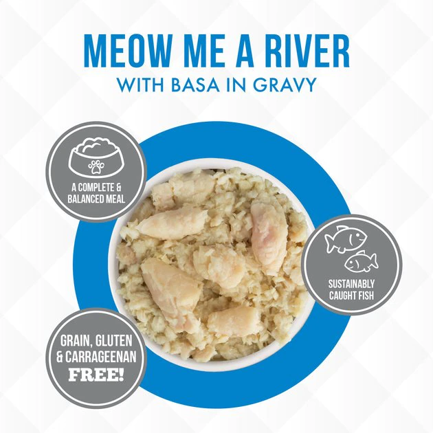 Fuel your little carnivore’s adventures with the Weruva Truluxe Meow Me A River with Basa in Gravy Grain-Free Canned Cat Food. Made with basa—a tasty river fish similar to catfish—as the first ingredient, every juicy bite is loaded with the meat your pal craves, and all the protein he needs for healthy muscles. Since it’s formulated with a perfectly-balanced blend of vitamins, minerals and heart-healthy taurine, every easy-open can is actually a complete meal—on its own or as a tasty kibble topper. Your kitty will love the meaty morsels and luscious gravy that also provides plenty of hydration so he can stay healthy, from nose to tail. It’s no wonder that for cats everywhere, Weruva is also known as “the best cat food under the sun!”